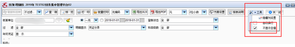 第一步:点开明细账右上角工具栏区域勾选不显示空值: