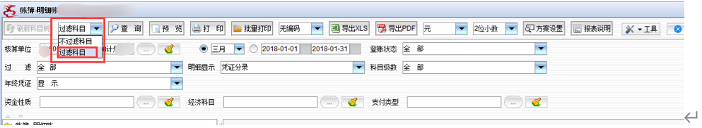 过滤科目:主要过滤当年没有发生额和余额的科目,减少明细账打印页数。